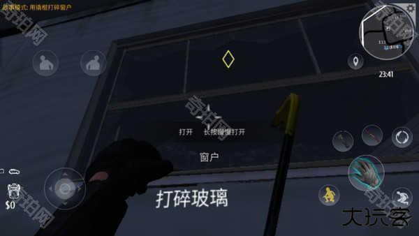 6、继续向前,走到阳台下用撬棍把窗户打破即可进入房子