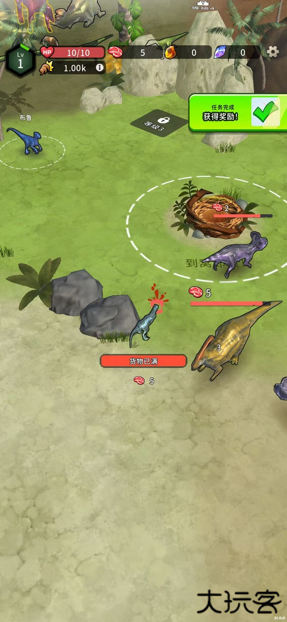 4. 恐龙背上出现闪烁的背包图标时,说明肉块 / 骨骼等资源已达上限。立即摇动摇杆掉头返回,靠近自家巢穴按互动键会弹出卸货界面。成功交付可获得基础经验值,背包图标也会停止闪烁