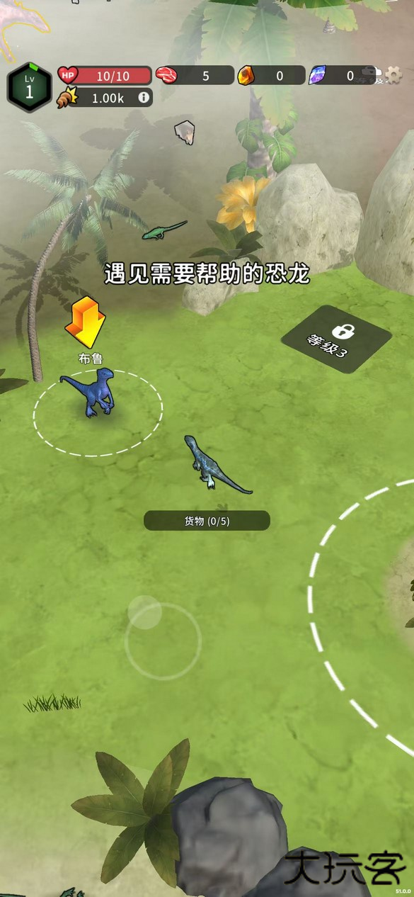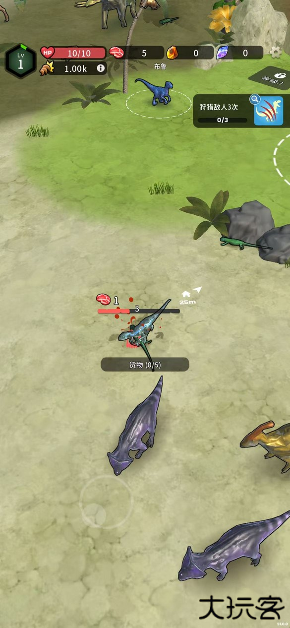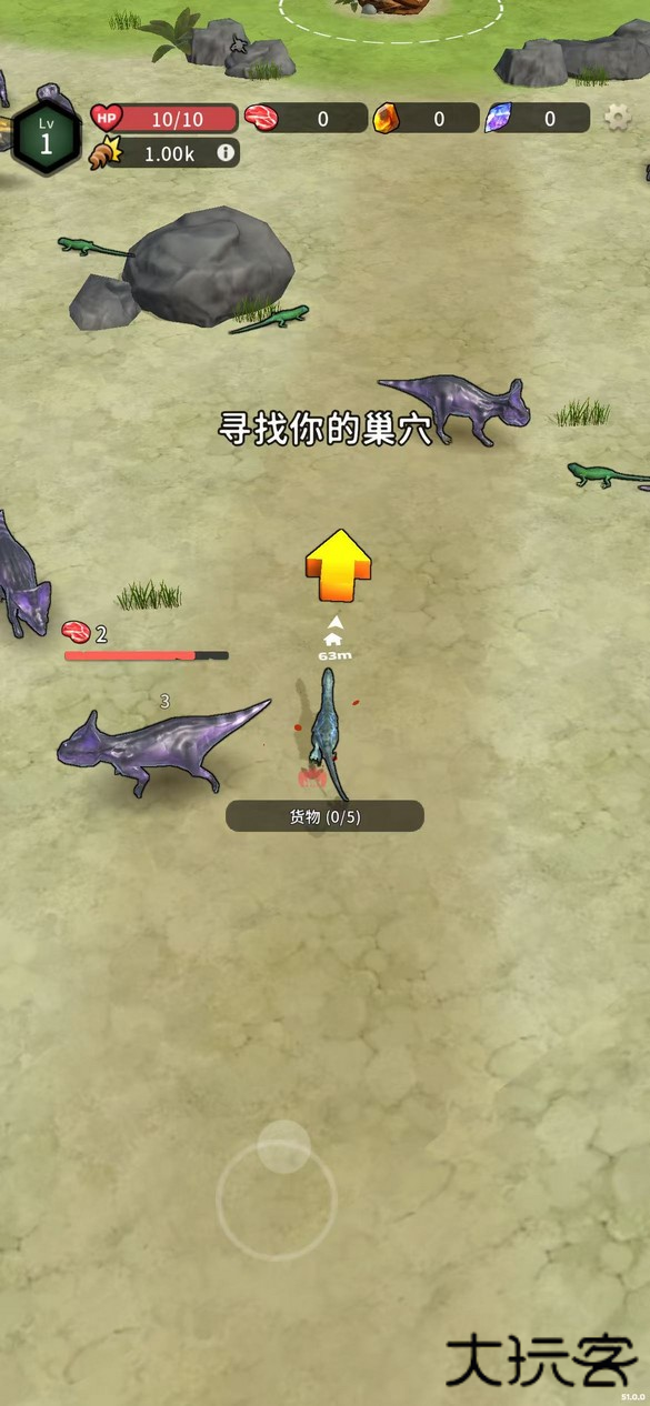 1.游戏加载完成后,屏幕左下角会出现摇杆图标,用拇指推动它就能控制恐龙移动。这时候可以在树林或草原上探索,尽快找到被藤蔓覆盖的恐龙巢穴入口,那里是你储存资源的重要据点