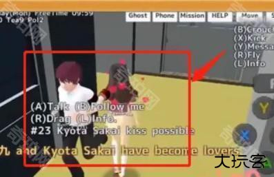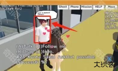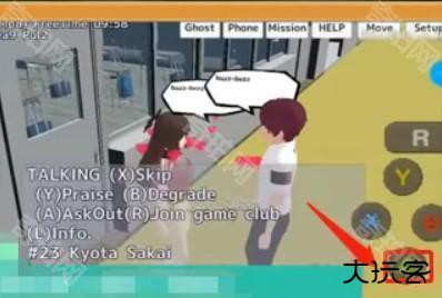 2、接着我们需要靠近喜欢的那个人按(A)Talk,然后再按A(ASKOUT)。如图所示。