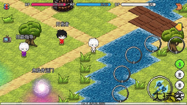 2.一定要在装备了法杖之后再出门打怪,空手出去是不行的。在村子里找到开发者角色接取第一个任务。天赋点数优先加在攻击距离上