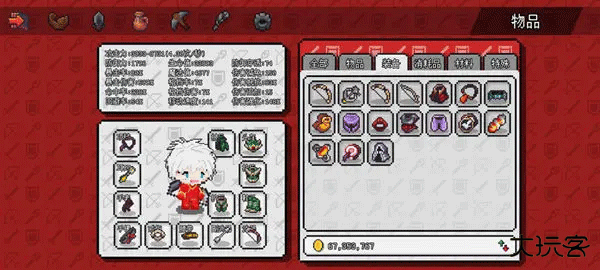 6、打开背包界面(常按空格或 B 键),把打怪爆出的武器拖到角色身上就能装备啦