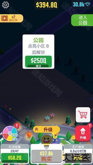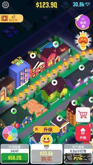 2、通过升级灯泡王国来获得更多的小灯泡,建造各种建筑物来收获新的收益