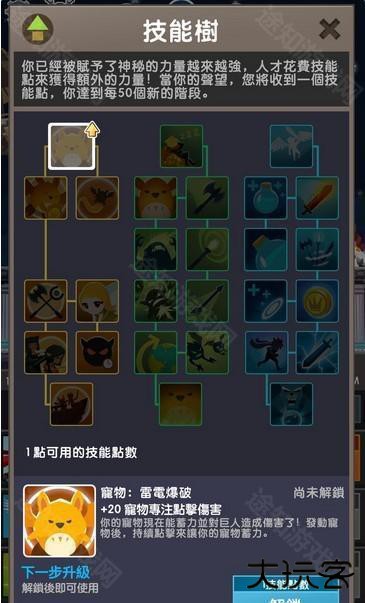 这次的技能树真是厉害了,在游戏中你会获得技能点,有三个技能树你可以选择从哪个开始加,每个都好想要啊,不过技能点不是那么好得到的,除此之外还可以获得武器,武器可以升级,如果收集了全套的武器套组还能变得更强,当然,武器和之前说的装备都不是那么好得到的,由此可见,放置游戏都一样,只有玩的时间长才能当上老大,时间越久你就越厉害。