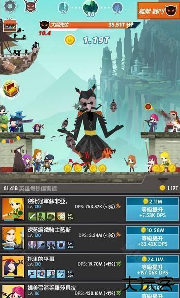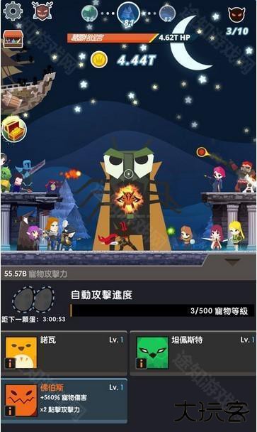 (1)除此之外,进入游戏玩一会就会发现底下的菜单栏从原来的4个变成了现在的6个,除了之前的主角栏、雇用英雄栏、神器栏和商店之外,这次还多了装备和宠物两栏,别小看这两个多出来的,这让游戏的成长系统多了两个也能让游戏变得更耐玩,装备可以改变主角的装扮也可以使自己变得更强大。