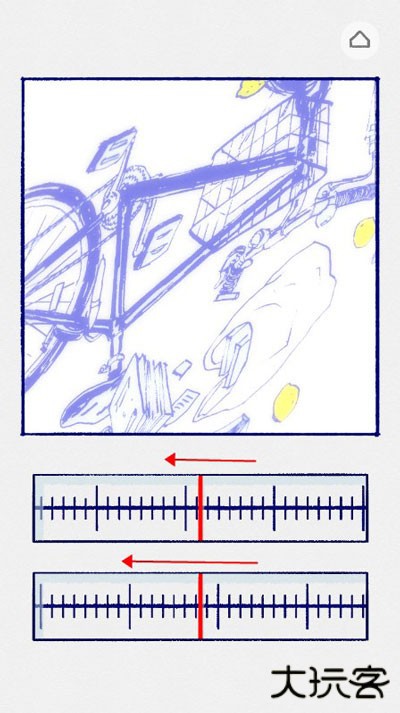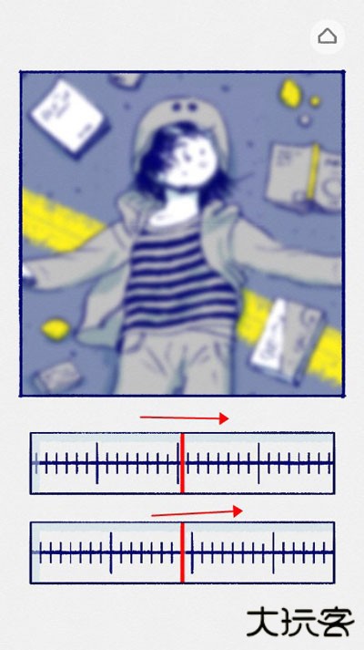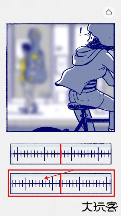 2、故事开头,小女孩看到后面有车来了,画面很不清晰,让我们把上面的刻度向右滑,直至肉眼看着最清楚的那个位置,一般都为刻度的最长的那根线或者中间的那根线,下面那个刻度尺向左滑,整个画面都高清后,就会进入下个画面。
