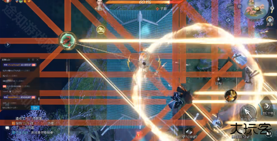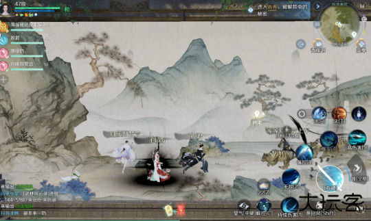 在与好友组队刷副本时,跟敌人大战三百回合后对手逃遁,你紧随其后。结果画风一转,3D游戏突然变成水墨风格的2D横版过关游戏......这是另类的“降维打击”。