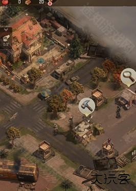 5、来到希望镇,点击地图上的树木可以砍树,点击废弃的建筑可以修复,点击垃圾可以探索