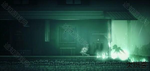 3、流浪者视角。往左走到房子前松动的木板上,站在木板上跳几次,破坏木板,从木板下的坑道爬进房子,获得镰刀。然后推开房门出去,砸死门外的黑色怪物。