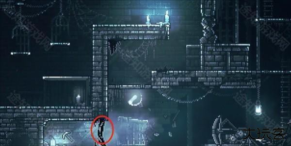 4、往右走,砍断挡路的藤蔓,继续往右,进入城堡后往右下的火盆方向走下去。
