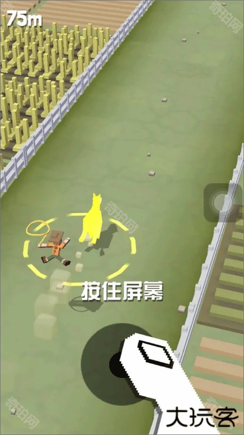 2、在遇到新动物后,先骑着当前的动物跑到新动物身后,接着松开手指,然后落在新动物的背上,再按住屏幕不要松开,然后拖动手指移动来躲避前方的障碍物,当屏幕中的【红心】进度条变满之后,就可以成功获取这个新动物了。