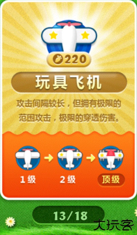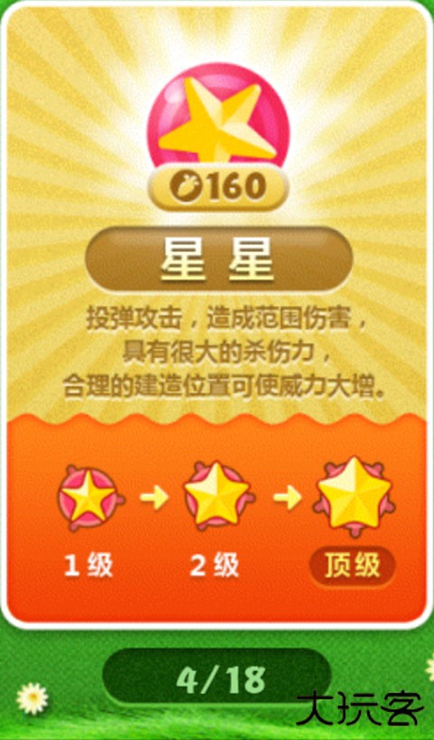 略带溅射伤害的单体输出炮塔,溅射伤害其实不太高,加之有转向时间,一般对飞行怪没有太好的攻击效果,主要针对巨怪和小喽喽,以及帮忙清道具。