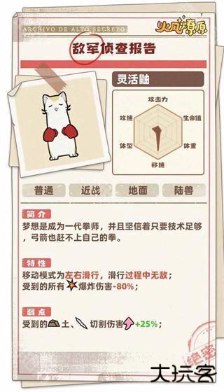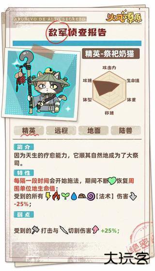 对于持盾猫兵来说,普通的弓箭技能对它无法产生足够的威胁,唯有火法和机关这类技能能够对它造成成吨的伤害了,相信主公也能明白,知己知彼,方能百战百胜!