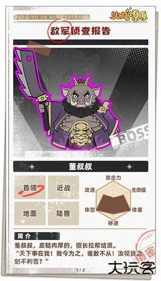 首领董叔叔,依然是难以应对的一个敌人,会时不时清楚自身周围敌军的负面效果并提速。那么一些特效就会失去效果,主公的应对方式可以多选择一些不带特效的技能,毕竟选择的特效越多,占用的强化词条越多,反而无法发挥平时一半的效果。还是那句话,首领无明显弱点,硬实力才是能打败他们的重要手段。