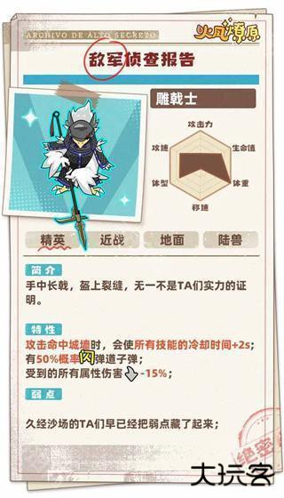 注意,此次的精英少有的拥有特性,在攻击城墙的时候,会增加武将技能的冷却时间,所以主公需要在雕戟士靠近前就击败。因为雕戟士还有概率闪避弹道子弹,所以弓箭和暗器类技能要少用。
