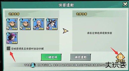 1、蓝色侠客太多了怎么办?在游戏内可以进行遣散,遣散会返还的专属货币,武道执念。