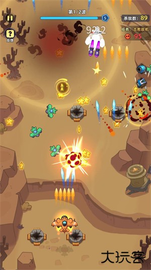 3、正式开始后滑动屏幕可以控制战机移动,战机会自动攻击,当子弹击中敌人后就会造成伤害。