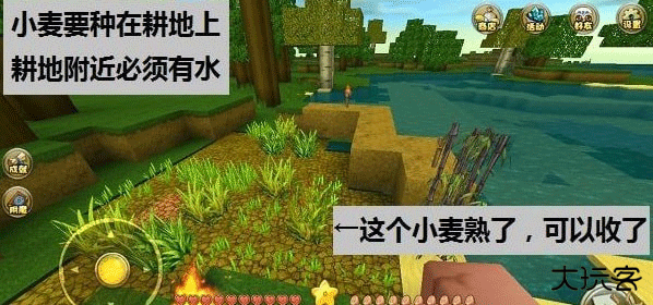 答:先做一把木锄(石锄也可),找到一片靠近水源的草地,右手拿着锄头点草地,即可变成耕地(耕地没有水会干旱)