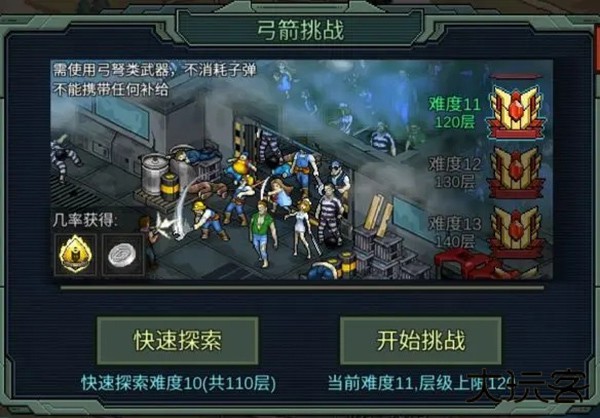 1、弓箭挑战。难度低,开始挑战耗时挺长,后面可以直接扫荡获取奖励,无聊时候可以挑战下自己极限,平时就扫荡就好;