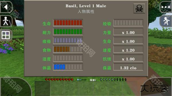 7、点击人可以查看人物属性,例如生命、耐力、食物、经验等等;