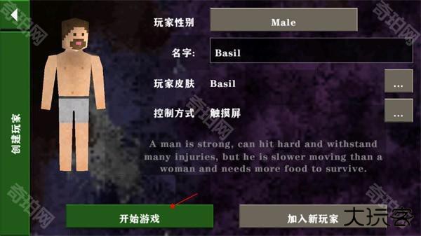 4、这里选择玩家性别,然后选择玩家皮肤等点击开始游戏;
