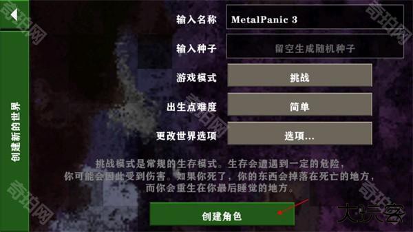 3、输入名称,选择游戏模式等,然后点击创建角色;
