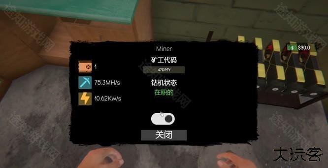 3、点击安装好的矿机,按F进入控制界面,打开开关,让其处于工作状态。