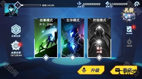 2、进入游戏游戏可看到,有着故事模式、生存模式、防御模式等三种模式可选