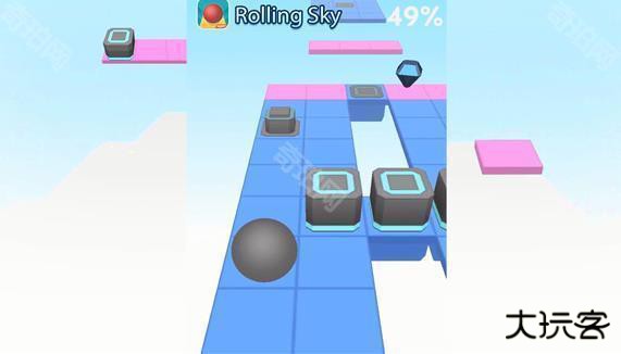 期间无需上滑使球跳起,方向最重要,会自动跃过方块,只需操纵落点方位,遇到红案的钻石,滚到所在位置吃掉,一路沿着缝隙处穿滑而过即可。