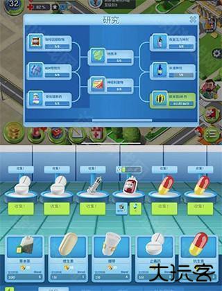 进入药厂和研究所。生产药品和补剂。可以进入全城补剂使用补剂,可以提高每个科室每个病人的健康值和快乐值。药品可以用于群体治疗,一次治疗多人