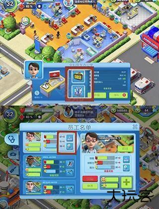 医生护士的等级越高,能力越强。并且医生护士的能力跟科室水平息息相关,科室的治疗水平取决于医生护士的技能值。只有医生进入了诊室,诊室才可以治疗病人。