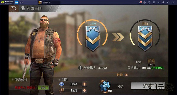英雄升阶:消耗特定数量的该英雄碎片和英雄徽章来提升英雄的军阶。升阶能带来巨大的战力飞跃、基础属性提升以及带兵数量增长。重要提示:提升军阶还能解锁该英雄技能等级的上限。和等级一样,军阶上限也受制于「英雄中心」的当前级别。