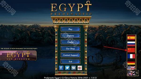 1、在本站下载安装并打开史前埃及游戏,进入游戏首页,找到右下角国旗标志。