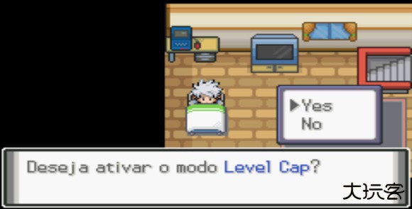4.选择难度之后,系统提示是否开启等级上限,(即达到一定游戏进度前等级只能上升到特定值,比如获得第一个道馆徽章之前等级不会超过16级这样)