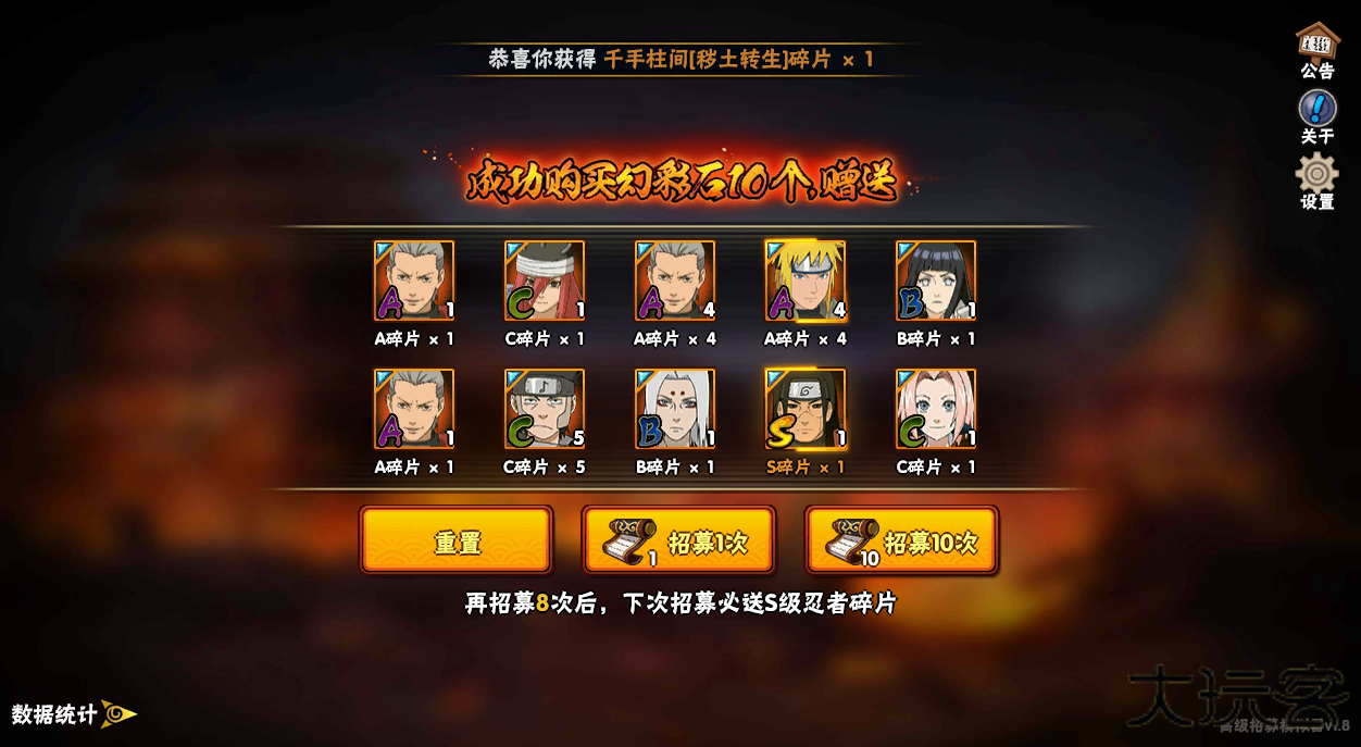 2.十连抽必得S级碎片,强力忍者的解锁之路变得更轻松。