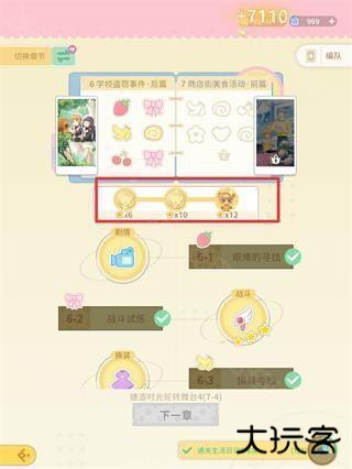 5、在游戏主页点击“玩法”-“生活日记”,日记中共有28个章节,每个章节都会有战斗以及装扮的任务,任务完成可以获取相应的友枝币和星之币(每个任务都要尽量拿到3星噢,只要全部关卡拿到3星才可以领取可爱的小樱)
