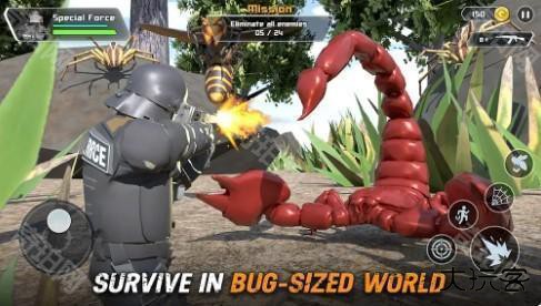 小小警察生存之旅是一款扮演警察完成各种任务的游戏,在这款游戏之中有着写实的3d画面,玩家将作为一个缩小的警察和整个警察局内的各种昆虫、场景以及随处乐见的女巨人警察之间斗智斗勇,确保你的生命安全的同时调查错综复杂的线索,从这个警局之中逃脱出去。除了需要应对昆虫动物们的攻击之外你还可以驯服他们,骑着苍蝇就能带你飞翔哦,感兴趣的话快来本站下载体验吧!