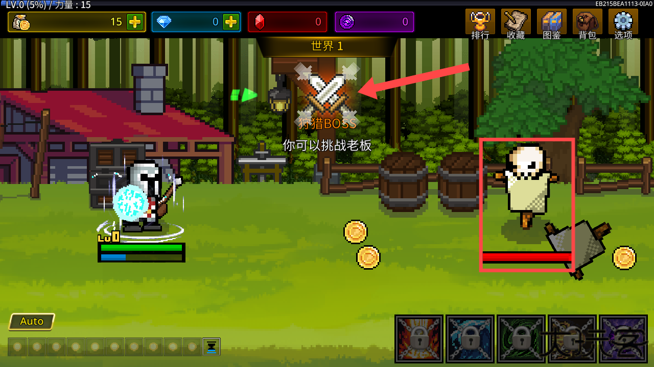 2、游戏里,玩家将方框内敌人消灭五个后,点击指示位置即可挑战BOSS。