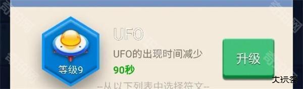 UFO,升级缩短出现等待时间,初始11分钟一次,满级30级,6分钟一次,每天没有上限,24小时在线就是240次,后期钻石的主要来源