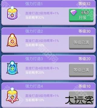 2.钻石最主要的花销就是先把强力打造升满。升满以后再管其他的。如图,这四个强力打造先都升到10级,然后是3-2-1依次升满