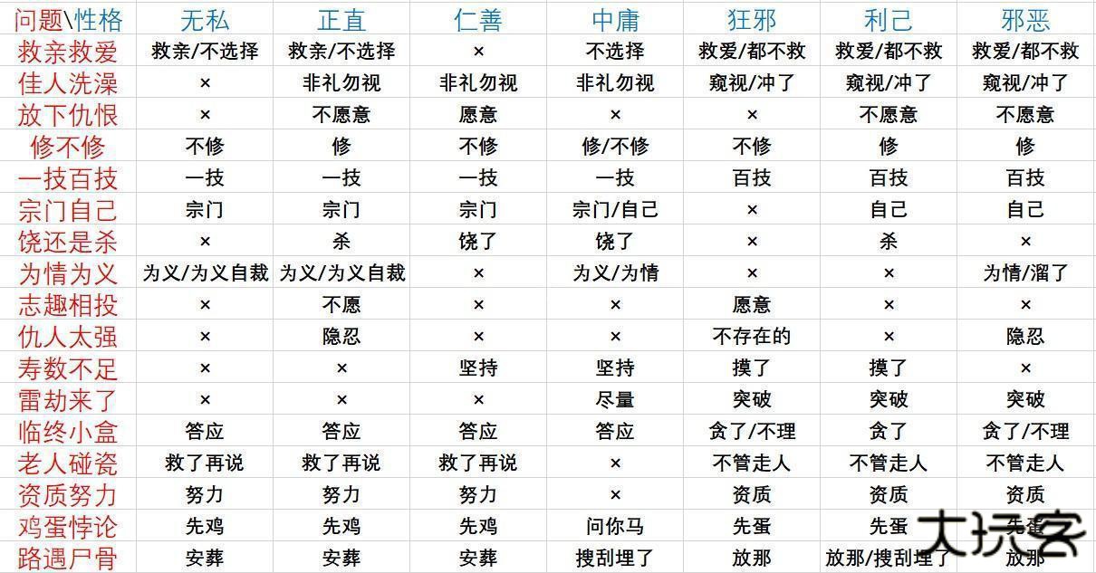 只要好感够,基本不会失败。论道选项应符合对方的内在性格。答对越多心得越多。与高于自己境界一级以上的目标论道可以获得最多心得。下面是简易论道答案表。