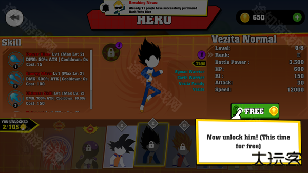 1. 游戏提供了各种各样的《龙珠》角色供玩家选择,有些角色需要用金币来解锁。