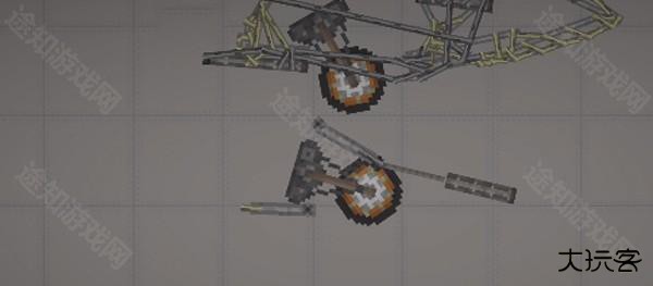 3、需要注意的是,这种不稳定的结构一定要加上支柱,即机头中间的长铁块,调成无重力不碰撞,链接到机头外壳即可