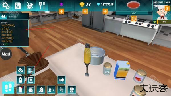 4、根据图示中的图标,前往厨房的不同区域,进行美食烹饪