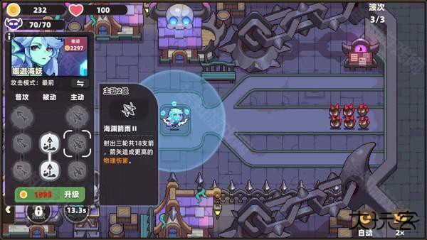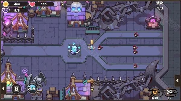 4、进入游戏如图,游戏采用策略塔防玩法,玩家可放置角色来抵御敌人进攻;