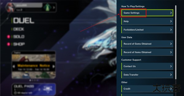 1、打开游戏王大师决斗,进入游戏之后点击右上角Submenu;