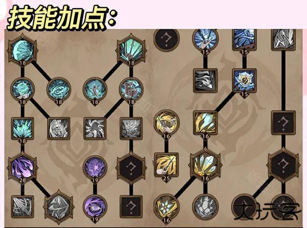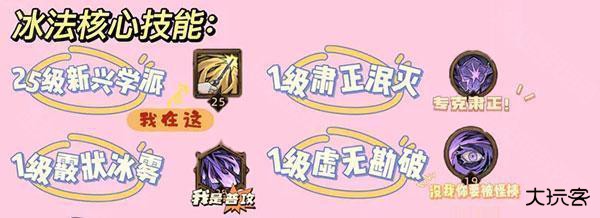 1级【霰状冰雾】作为普攻技能,该技能可以进行全体攻击,搭配学派可以进行快速过图。除新兴学派外,其余技能可只点1点,根据自身装备效果进行额外加点。