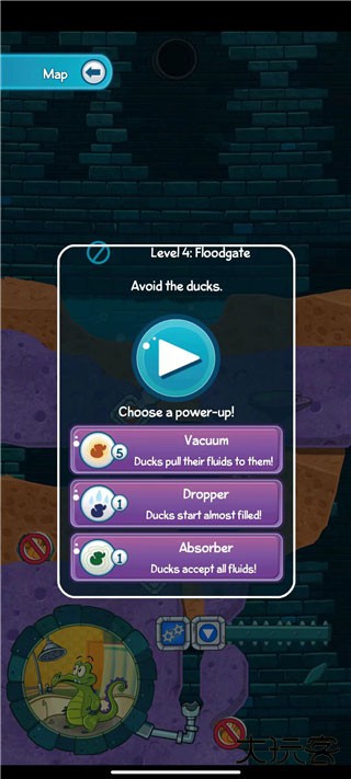 3、第三个道具叫:吸收器;作用是:鸭子会吸收所有液体!正常的关卡是需要毒水,使用道具后清水也可以收集。以此类推:爱丽关卡同样适用。