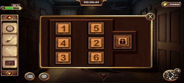8、卧室下方还有个密码装置,密码藏在床上方靠右的画框里,需要仔细发现它的六位数;好了,有了这些线索和信息,开门的钥匙近在咫尺,去试吧