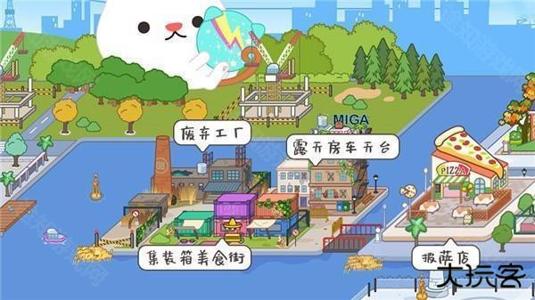 1、小镇地图从左到右分别对应的是:废弃工厂、露天房车天台、集装箱美食街;